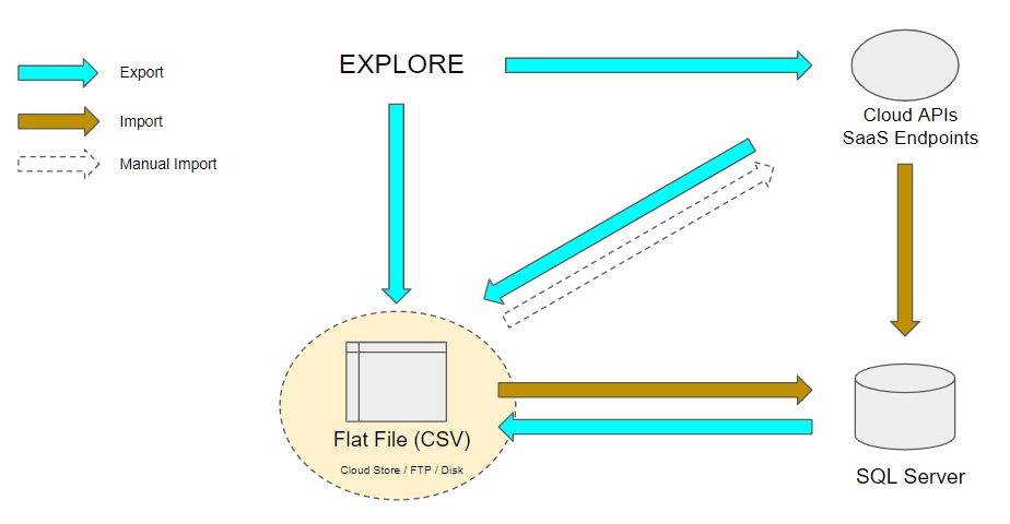 Many cloud platforms (such as MailChimp for example) can also use flat files to import data; we are considering this use case as a manual import mechanism for the purpose of this discussion, and is not covered in this article.