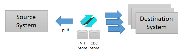 It is also possible to extract all current records in their initial state before starting the CDC process. When configured to do so, a complete extract of the source system is performed and stored in an INIT Store. This makes it possible to build a complete replication mechanism between two or more systems.