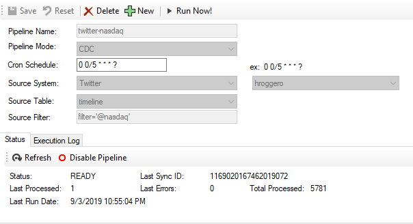 - Click Save to create and start the pipeline