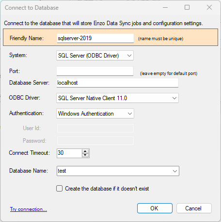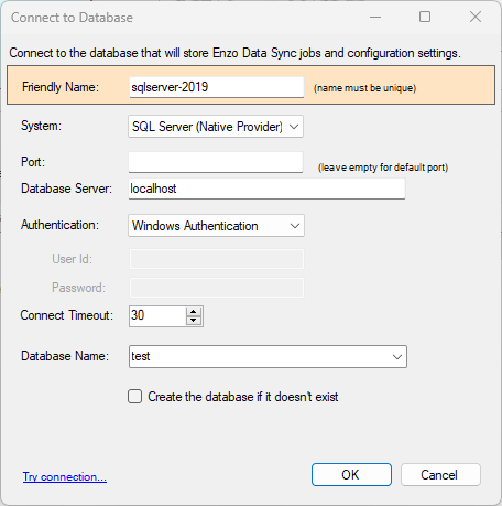 Click Try Connection… to make sure the credentials are correct. Then click OK.
